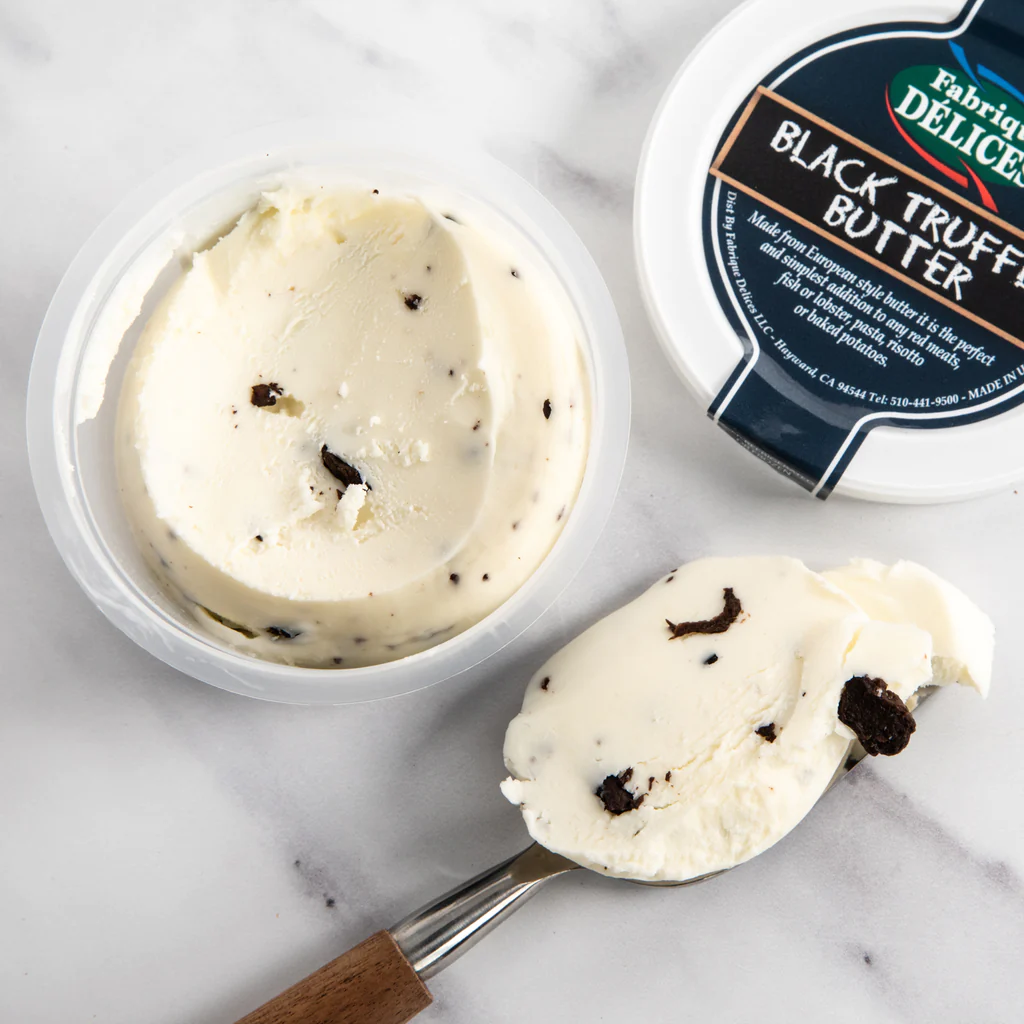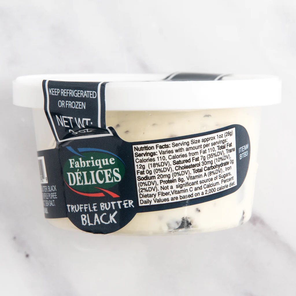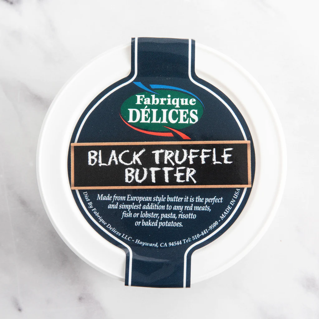 This Fabrique Delices black truffle butter is a fabulous and easy way to introduce yourself or a friend to the exotic world of truffles. The black truffle has a pleasing, wet-leaf, earthy smell and is usually added during cooking. This is an amazing ingredient that delivers sophisticated flavors to your culinary creations. Made from 100% French butter (Veritable Beurre de Baratte), it is the perfect and simplest addition to any red meats, fish or lobster, pasta, risotto, baked & mashed potatoes, steamed and sauteed vegetables, as well as the finish touch to any sauce. Bon appétit!