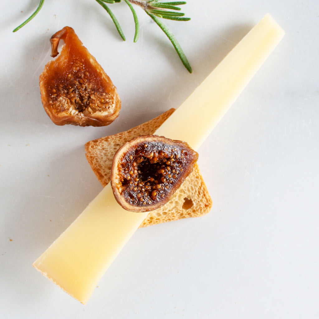 In the silence and shadowy darkness of the cellars Comté undergoes a second transformation, as the wheels age on spruce boards. The new wheels are carefully looked after so as to encourage the natural development of flavors as the months pass by. This Comté is aged for sixth months, where it develops a tight-knit texture and satiny body. On the palate, one can detect notes of fruits, hay, and a slightly nutty, smoky flavor gained during the process when the curd is cooked.