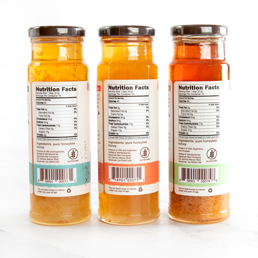The Everyday Honey line redefines honey like only Savannah Bee can. For each Everyday Honey, apiarist and founder Ted carefully chose from his 100% pure varietal honeys based on the sweetness and flavor profile that suits its intended use. The label indicates the best way to incorporate the luscious flavor and undisputed health benefits of honey into everyday preparations. Enjoy each Grill Honey, Cheese Honey, and Tea Honey everyday in every way.