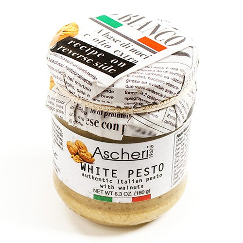 The Italian Riviera is famous worldwide for their Pesto alla Genovese, lesser know, outside of Liguria is their classic White Pesto. Also known as Salsa di Noce or Pesto di Noce, Ascheri 1960 makes their white pesto with walnuts (40%), EVOO (30%), cashew nuts and Grana Padano DOP. Simply serve over pansoti, ravioli, gnocchi or pasta - makes a simple bruschetta. Finish with parm or pecorino and fresh marjoram, thyme or oregano.