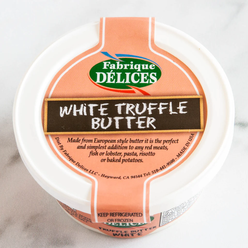 This Fabrique Delices white truffle butter is a fabulous and easy way to introduce yourself or a friend to the exotic world of truffles. The rare white truffle is complex with notes of garlic, spices, earth, hay, and a touch of honey. White truffles are generally used to flavor finished dishes. This is an amazing ingredient that delivers sophisticated flavors to your culinary creations. Made from 100% French butter (Veritable Beurre de Baratte) it is the perfect and simplest addition to any red meats, fish or lobster, pasta, risotto, baked & mashed potatoes, steamed and sauteed vegetables as well as the finish touch to any sauce. Bon appétit!