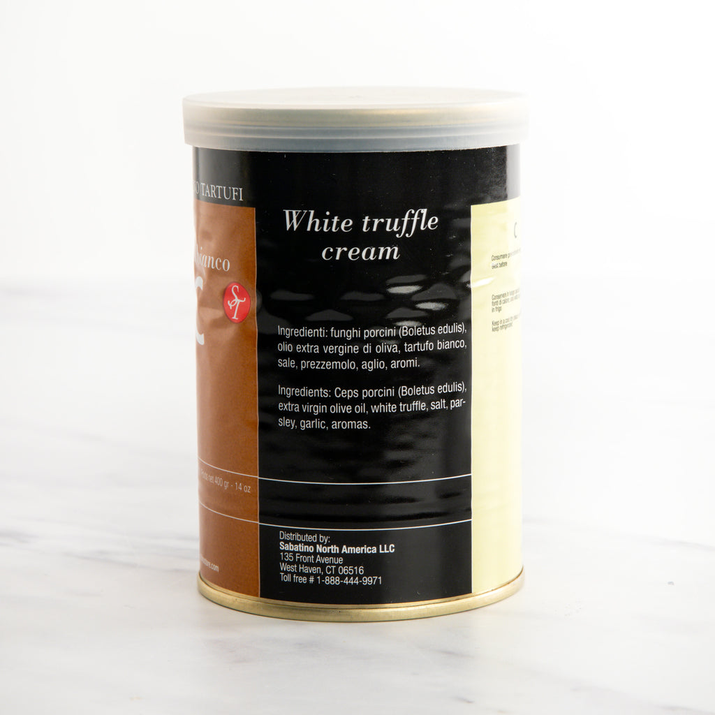 This rich and savory puree blends together white truffles, porcini mushrooms and extra virgin olive oil. Even though it is called a "cream", it has no dairy ingredients. Use this wonderful sauce to top canapes when preparing pass around appetizers. Drizzle it onto pizza for a gourmet touch. Fold some into cream sauces to elevate pasta and rice dishes to unforeseen heights.